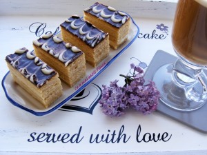 Dam prajitura la rece pana a doua zi pentru a se intari crema si a se inmuia foile.