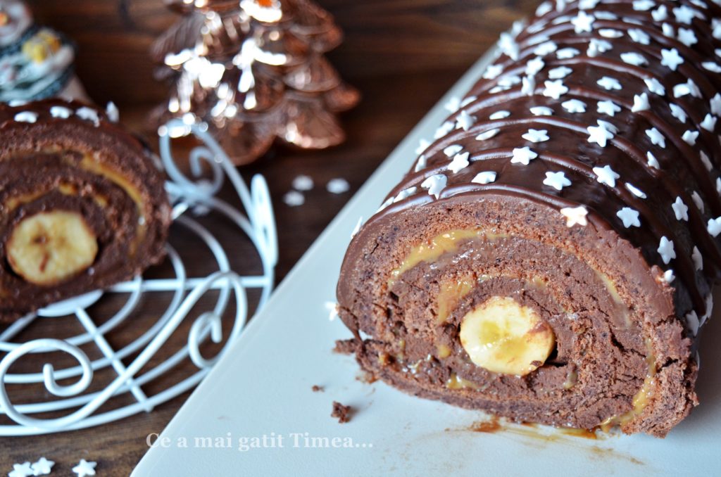 O rulada gustoasa cu multa ciocolata, caramel si banane, pregatita pentru noaptea de Revelion. Nu este cea mai frumoasa rulada dar categoric este una buna, mai ales pentru iubitorii de ciocolata si caramel. Am folosit lapte condensat caramelizat de la DeLatte pe care il recomand cu mare drag.