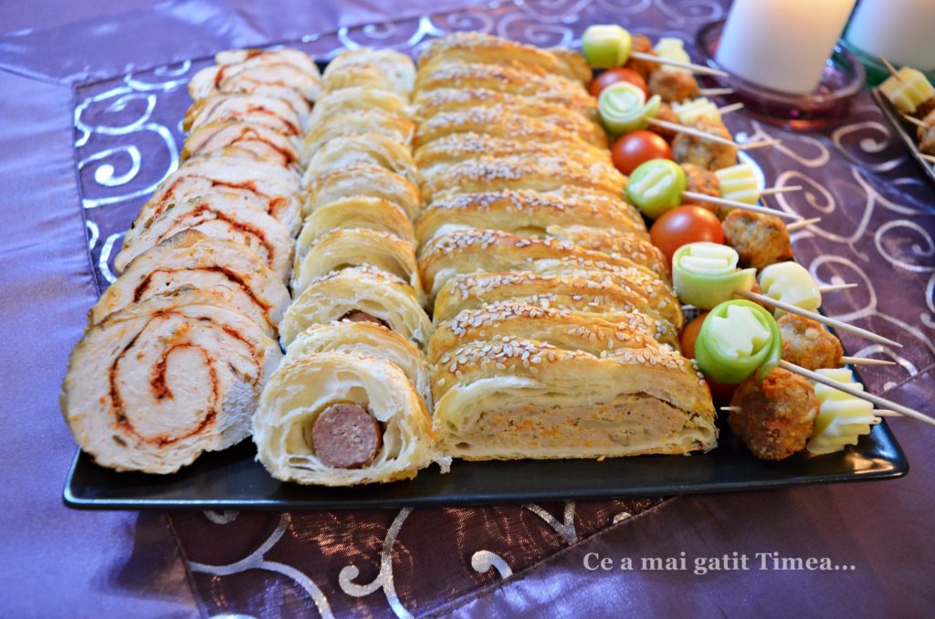 Rulada arata minunat pe un platou festiv alaturi de alte preparate: