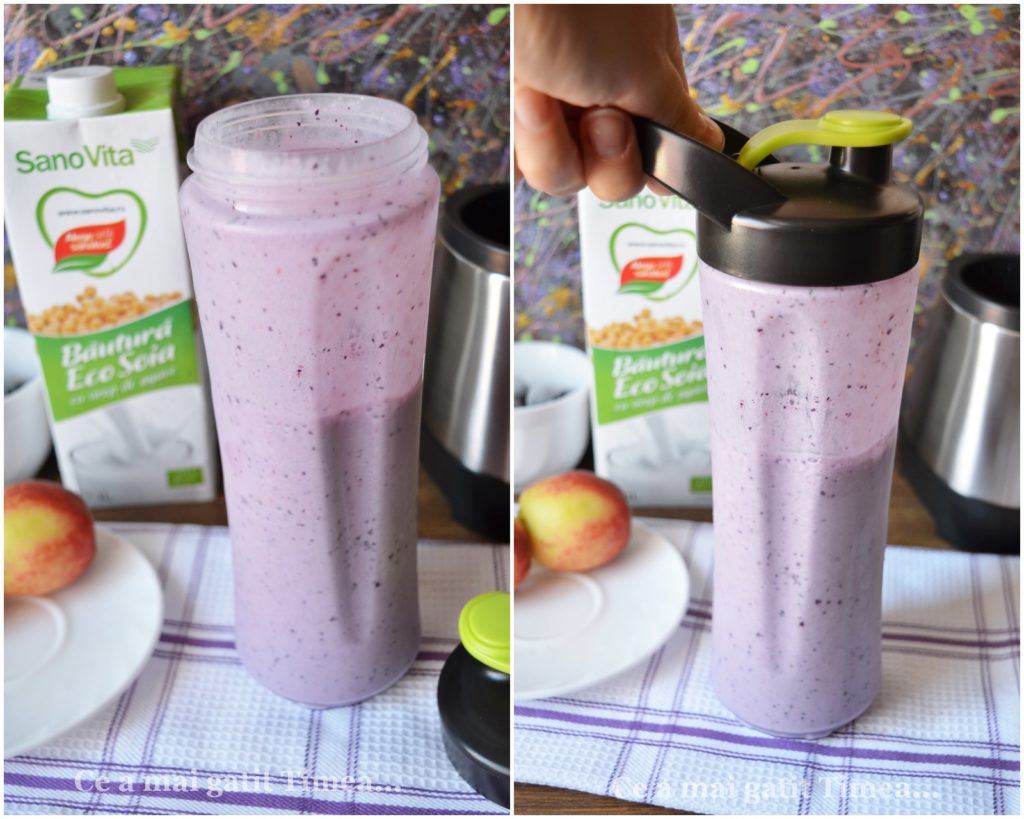 Putem incepe dimineata cu un mic dejun gustos, gata in doar cateva secunde. Avem nevoie doar de cateva ingrediente sanatoase si partea buna e ca putem lua acest mic dejun si cu noi la drum sau la locul de munca daca folosim un blender personal cu recipient portabil (eu am folosit unul de la Tefal)