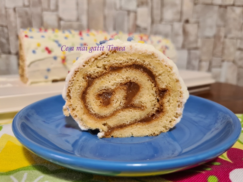 Rulada cu ciocolata, caramel si banana