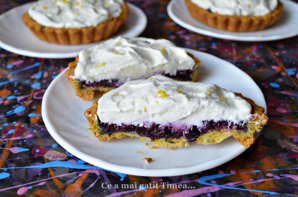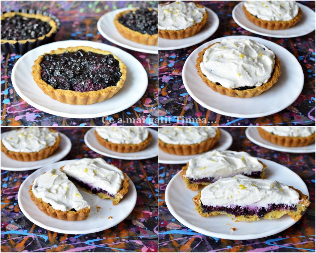 - Si cum va ziceam mai sus, din aluatul ramas am facut 3 minitarte umplute cu afine si ornate cu frisca.