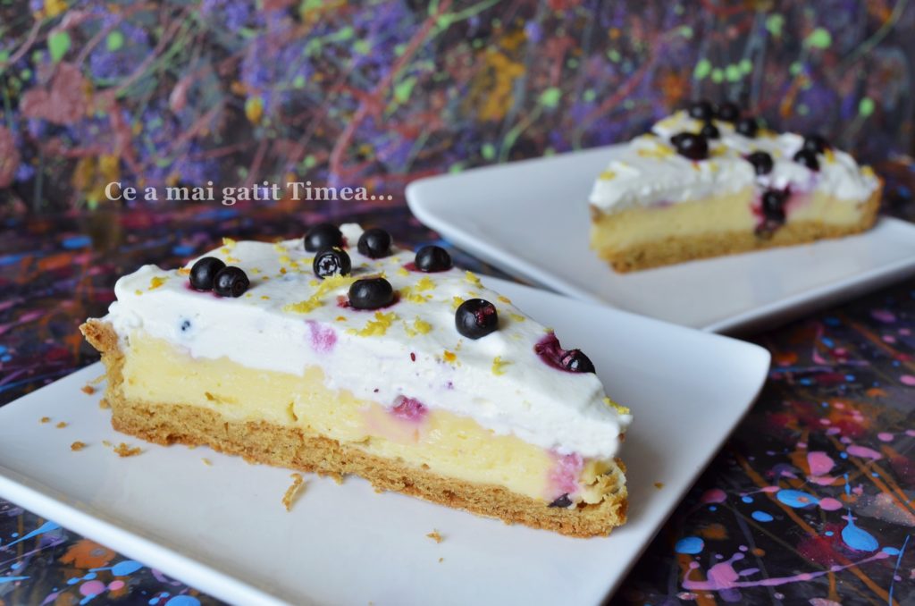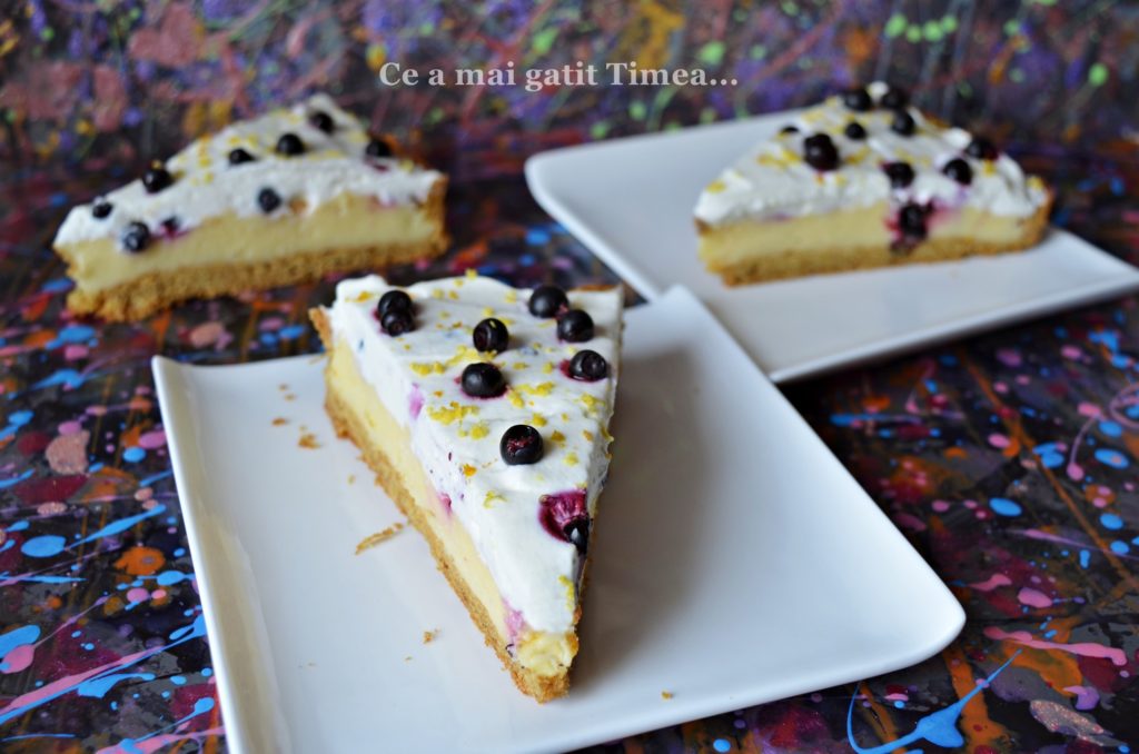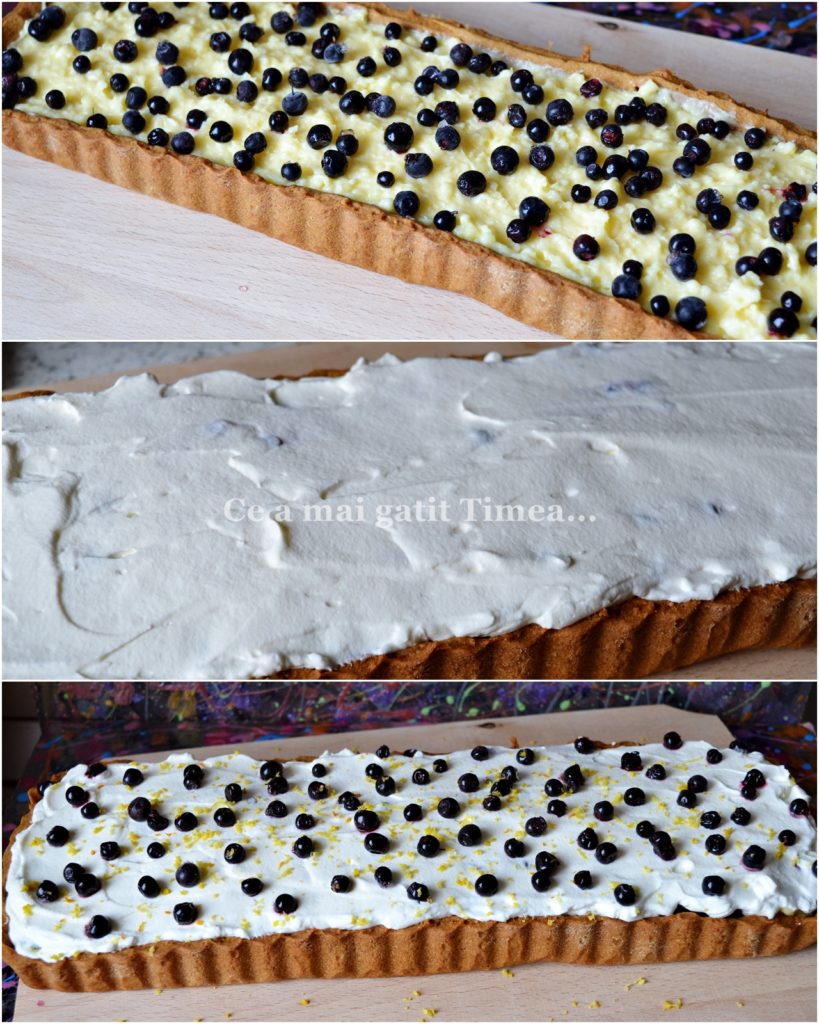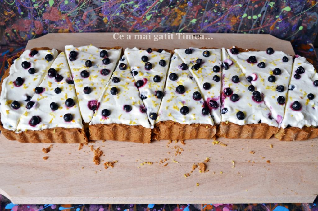 - Ornam deasupra cu aprox 2 linguri de afine si coaja rasa de lamaie.