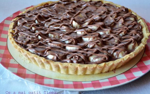 Din nou o tarta! DA! Dar de data aceasta una foarte cremoasa, cu muuuulta crema de vanilie intr-o crusta crocanta si un toping de banane si cicocolata. Perfecta o definesc eu si ca de obicei va invit sa o incercati ca sa va convingeti singuri 🙂