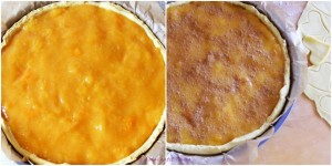 Asezam aluatul in tava tapetata cu hartie de copt si taiem surplusul de aluat.