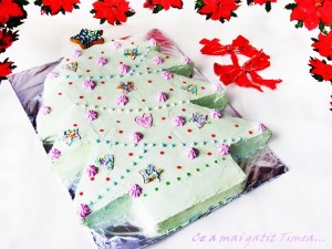 Am ales sa fac un tort sub forma de bradut cu multe arome de iarna. Nu va mai spun, ca la mine in casa miroase a Craciun inca de acuma 🙂 si e un sentiment tare placut.