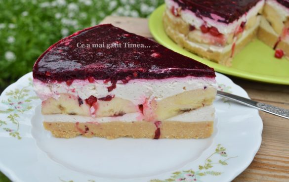 Tort cu frisca banane si fructe de padure, un tort usor si racoros, vine in intimpinarea verii si va provoc si pe voi sa il faceti si sa il serviti cu cei dragi.