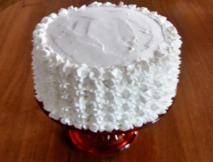 Mixam si cele 150 ml frisca si cu un pos sau o seringa ornam de jur imprejur cu floricele.