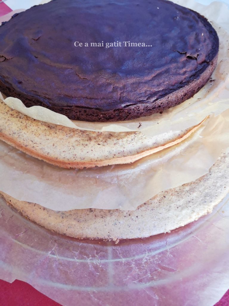 - Este ideal sa pregatiti tortul inainte cu o zi de taiere, asta si pentru ca sunt mai multi pasi de urmat, printre care si statul la frigider si racirea blaturilor si a cremei etc.