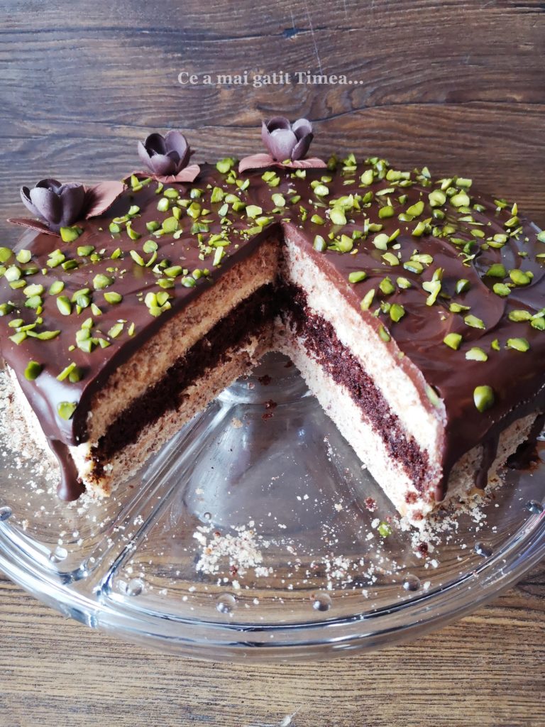 Un tort gustos deschide seria retetelor din 2019, un tort cu care mi-am rasfatat prietenii cu ocazia zilei mele de nastere acum 3 saptamani. Tort cu migdale si crema de vanilie nu e doar atat, este si un blat de ciocolata cu cafea si un final cu toping de ciocolata si fistic, combinatii reusite de arome si culori.
