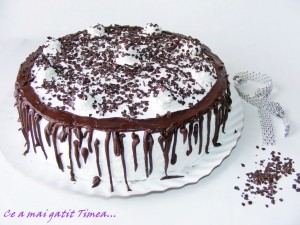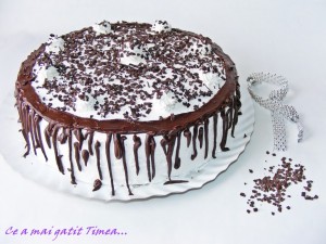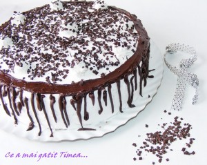 Ciocolata o topim pe baie de aburi impreuna cu untul. Decoram tortul cu aceasta glazura.