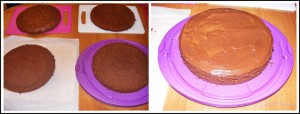 Asamblare: se taie cele doua blaturi in 2, deci obtinem 4 foi. Asezam prima foaie, ungem cu crema, apoi urmatoarea foaie si ungem cu crema, tot asa pana la ultima pe care la fel o ungem cu crema, inclusiv pe margini.