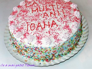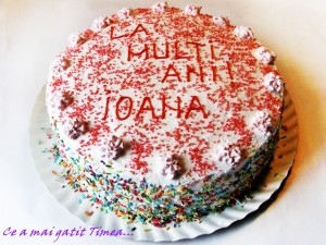 Tort Ioana Un tort super gustos facut cu drag unei fetite dragi de 3 ani, care s-a bucurat tare mult de multitudinea de bombonele colorate si de floricelele roz.Reteta tortului o puteti vedea aici . (Nu există încă evaluări)Loading...