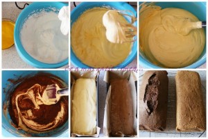 Compozitia ramasa o amestecam cu cacao si o lingura de lapte si o turnam in a doua tava.