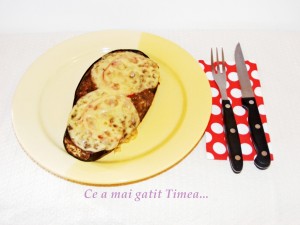 Scoatem din cuptor si asezam deasupra felii de cascaval ( optional, eu personal mananc fara 🙂 )