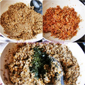– pulpa de porc o tocam impreuna cu morcovii, ceapa si usturoiul si apoi o calim timp de 5 minute