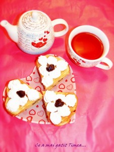 Am aparatul de wafe de vreo cativa ani si sta asa de frumos sus pe dulap langa alte aparate nefolosite! 🙂 Asa ca mi-am propus sa folosesc din cand in cand tot ce am acolo ca sa nu se supere ca stau nefolosite. Si am inceput cu aceste wafe, umplute cu dulceata buna de capsuni din gradina parintilor mei.