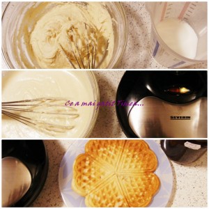 Incingem aparatul de wafe si prajim aprox 8 wafe din compozitia de mai sus.